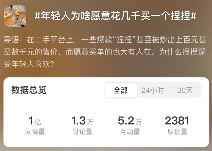 早在今年 5 月,微博就有過這樣一個熱搜:年輕人為啥願意花幾千買一個捏捏?
