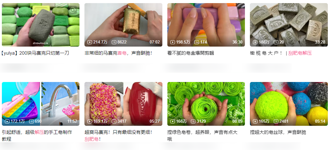 於是,許多人把刮肥皂、玩捏捏的過程加以剪輯上傳。