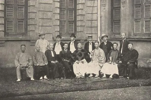 1900年海峽英籍華人公會首屆委員會集體合影,前排左1為王德林
