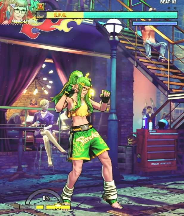 遊戲內還有很多系統,諸如SPG(顯示在血條上,血量到達SPG條中可以使用隱藏大招和強化),多種防禦效果,佯攻於制動等等,豐富度和複雜性都不低——這些要素綜合在一起,對新手玩家而言顯然有着不小的門檻。但對這點,在本次試玩和後續採訪中,官方都明確表示,遊戲內有明確的一套專供新手的簡易系統,可以讓新手玩家輕鬆打出連段,同時進行中級水平的立回,體感上他有些類似《街霸》的現代模式,確實在一定程度上中和了遊戲的高門檻設計。