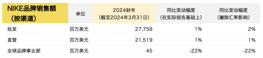 問題在今年逐漸凸顯。2023財年,耐克直營收入佔總營收的43.6%,2024財年幾乎與2023財年持平,但淨利環比大幅下跌,2024財年第三季度直接跌去了25.73%,2025財年第一季度,這一數據再次下跌至27.6%。