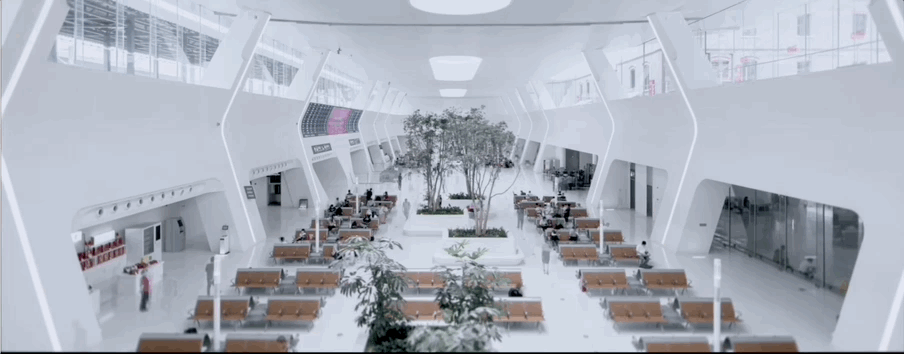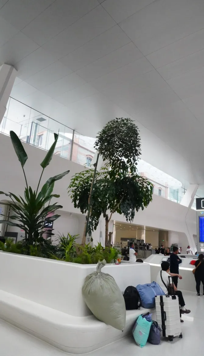 當內部綠植和候車的人們、行李箱、大塑料袋放在一個畫面裏的時候,反差感有,但同時也很chill不是麼