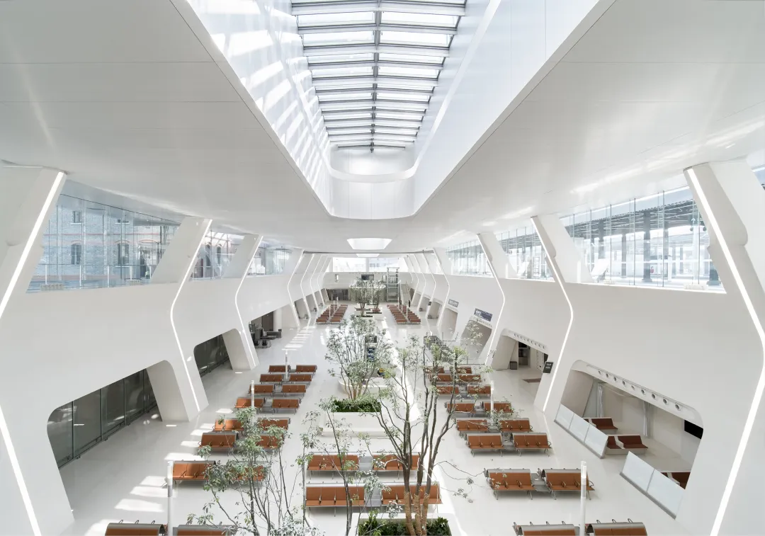 而在嘉興火車站空間裏,看到了火車站這個空間的美感被具體呈現,是突破以往固有印象的