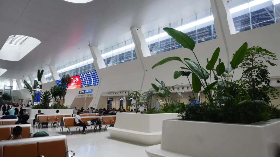站內候車廳在各個角落都分佈着不同種類的綠植