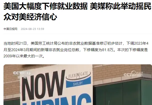 8月21日,美國統計局宣佈過去一年的非農就業數據都被下面人統計錯了,需要下修81.8萬人,這個數據把全球人都給看傻了,要知道每個月美國的非農數據也就十萬二十萬左右,波動個10%都屬於能對經濟造成重大影響的級別了,如今一口氣下修平均每月7萬人簡直是離大譜。