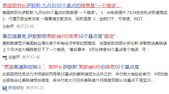 誠如美國前財長薩莫斯所言,美聯儲上個月降息50個基點可能是個錯誤。