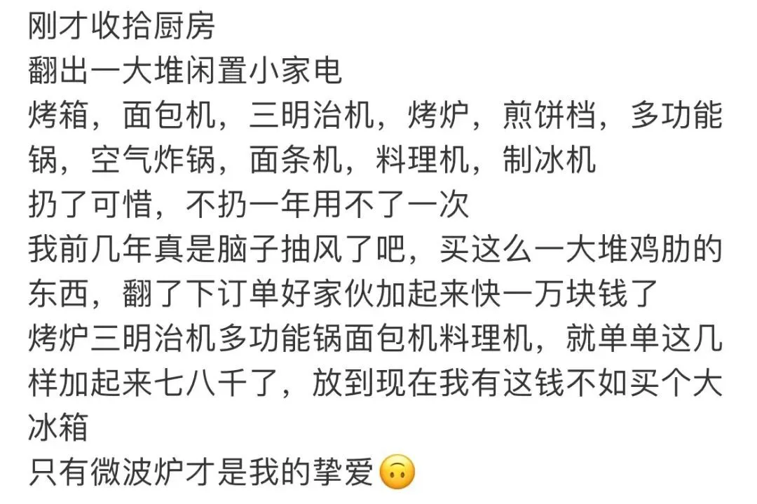 不止是已經被吐槽很久的“積灰大户”空氣炸鍋,各種帖子和評論區受害者沒有放過每一個有姓名的小家電: