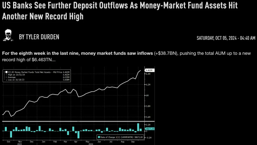 摩根資產管理的投資組合經理Bob Michele在10月6日發表的報告中認為,目前,美國貨幣市場基金有近6.5萬億美元準備在美聯儲開啓降息週期後立即撤離,清場式拋售,部分將轉向收益更高的市場。