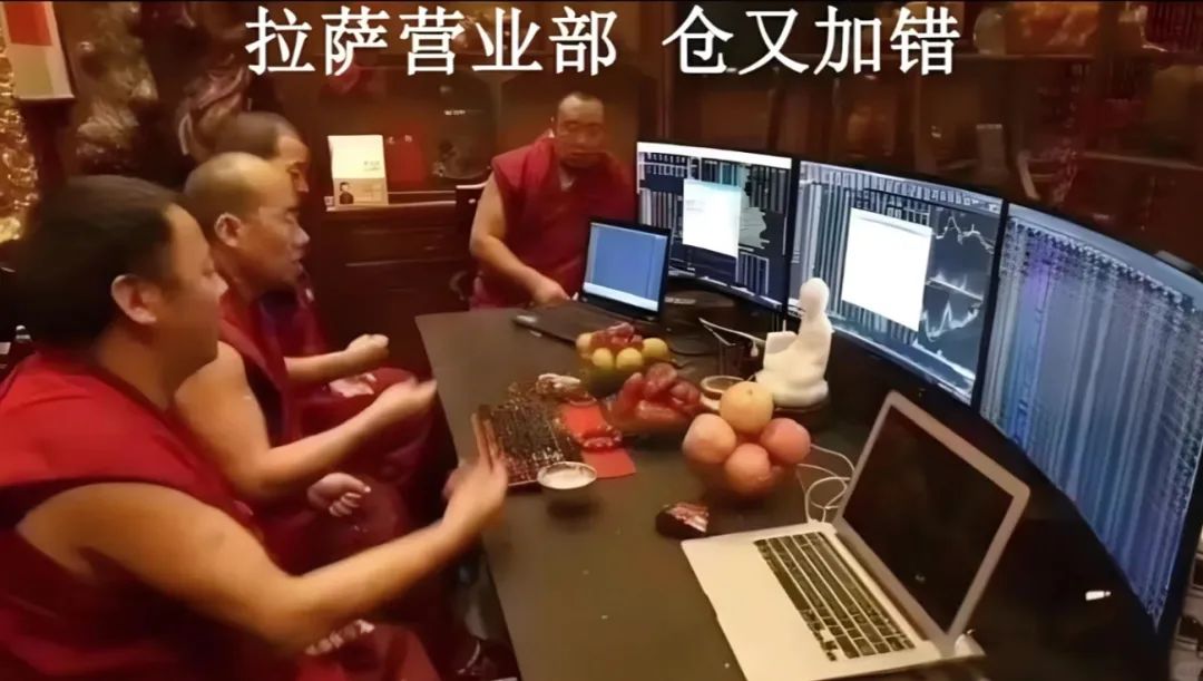 拉薩營業部內,眾人對着滿屏的倉位焚香唸佛,倉央嘉措?倉又加錯!