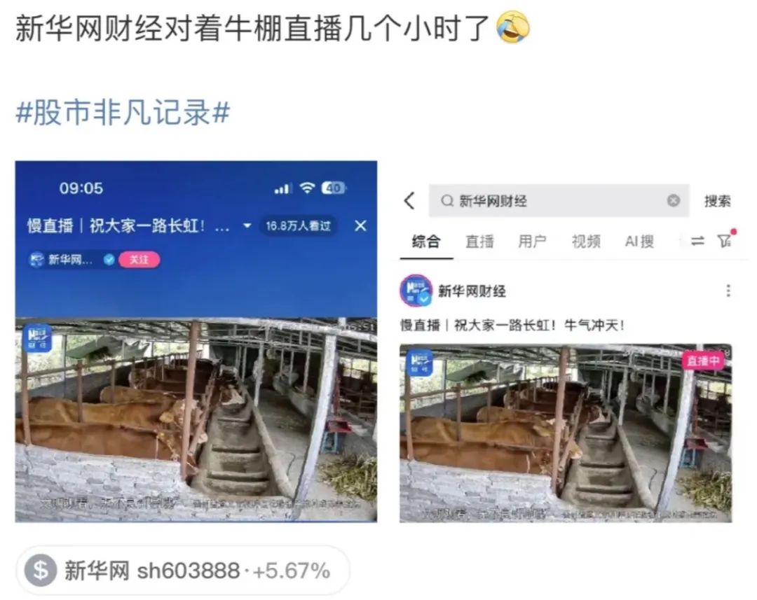 新華網一度深得電影頻道六公主的真傳,不直接講數據,講走勢,咱們就安安心心“直播牛”。