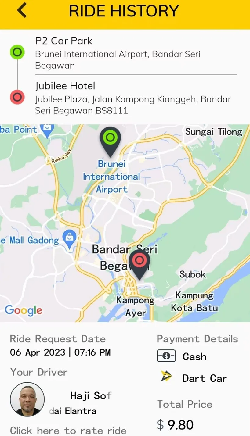 而不會開車的我,只能選擇下載文萊專屬打車軟件Dart。在文萊打車可是一件奢侈事,從機場到酒店,十幾分鐘的路程,居然需要9.8文萊元,摺合50多元人民幣!