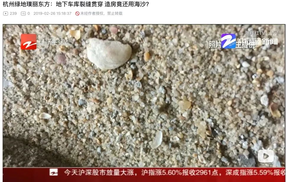 不説這些遠的,前幾年杭州也有樓盤爆出來用海砂修小區,漏水就不説了這沙子裏還有貝殼。。。