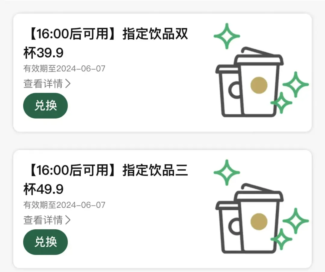 2021年至今,星巴克先後推出優惠年益卡、生日邀請券、週年慶邀請券、年底買一送一等活動,而在直播和團購中推出的限時福利等優惠力度,更是一度將其個別單品單價壓至19.9元、9.9元。