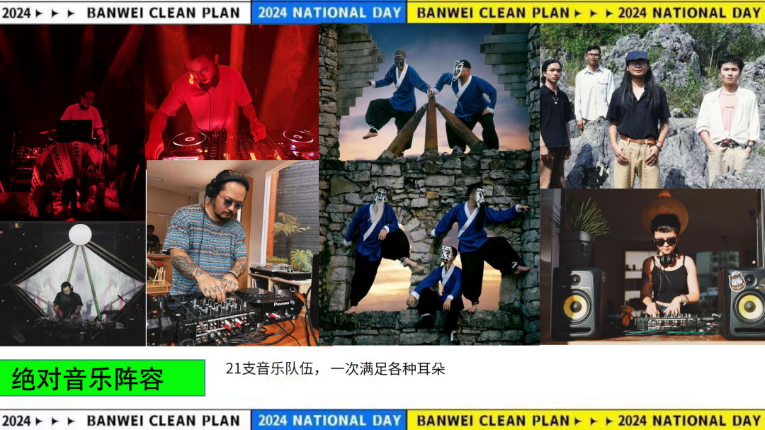 此次音樂節共有20支樂隊和17組DJ輪番上陣,其中市集樂隊-走失的小馬、神納姆等樂隊帶來了他們對貴州方言和民間音樂元素的現代詮釋,為觀眾呈現了充滿活力的現場表演。來自貴州各大高校的樂隊-潦草藝術家、破繭樂隊、飛行計劃等,以其充滿激情的演出,在大草坪區域展現了校園音樂的新活力和創造力。電子音樂人-MEEGO、LO²、Neuropathy等則用他們動感的DJ set在電子舞台為觀眾們注入現代電子音樂的活力。