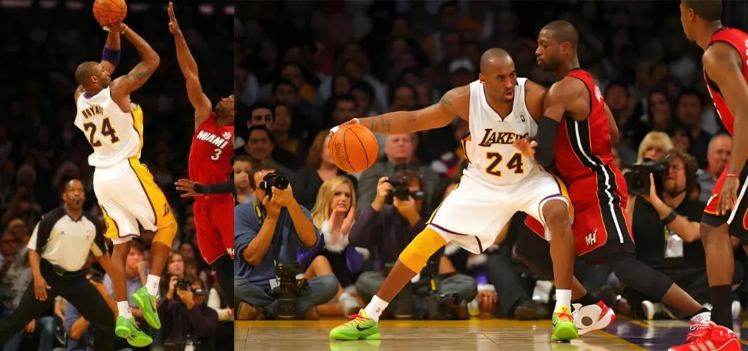 戰鬥中的科比·布萊恩特,腳上穿着耐克的科比6,配色“青蜂俠”