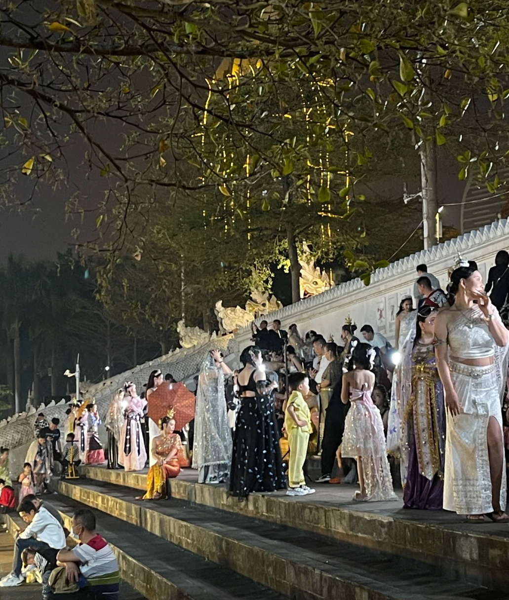 由於遊客太多,機位有限,所有人只能在一米左右的空間中擺出姿勢,避免在其他人的鏡頭裏入畫,而當天西雙版納的室外温度是37℃。