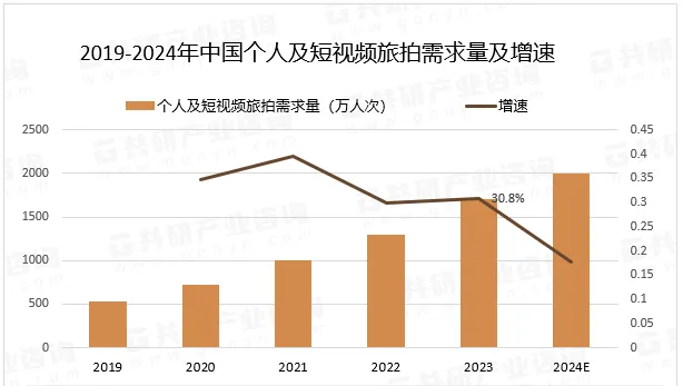 據統計,2023年我國旅拍需求量為2260萬人次,市場規模為395.3億元,旅拍視頻需求量相比去年增長30.8%