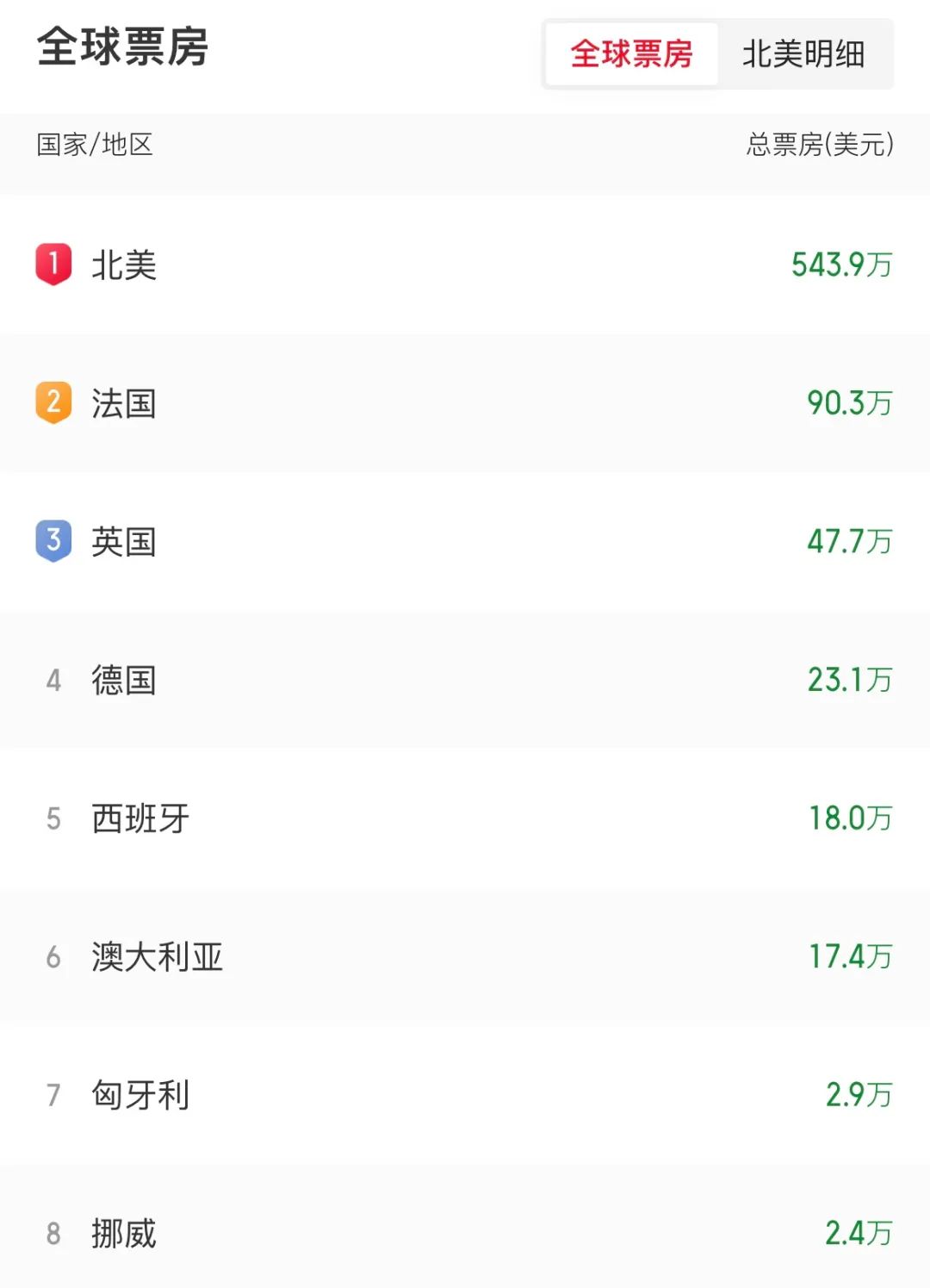 在本土閃崩之餘,《大都會》的海外前景同樣嚴峻。據Comscore統計,《大都會》首周共進軍11個國家和地區,北美之外的收益為210萬美元,與本土合計剛達到6百萬美元。具體來看,《大都會》在法國(90萬美元)、英國(48萬美元)、德國(23萬美元)、西班牙(18萬美元)、匈牙利(3萬美元)和挪威(2萬美元)等市場都表現平平。接下來《大都會》還將在巴西的聖保羅國際電影節和荷蘭的帕羅爾電影節上亮相,並計劃進軍意大利、葡萄牙和立陶宛等國院線。
