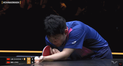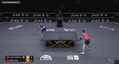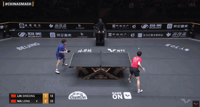 ——但是林詩棟的果斷沒有絲毫的動搖。他在下一分的互相控制中用一記強力正手擊穿馬龍的防線,下一分直接長球然後封住馬龍的側身。之後馬龍選擇長球,雙方反手對抗中林詩棟反手稍微擦邊。