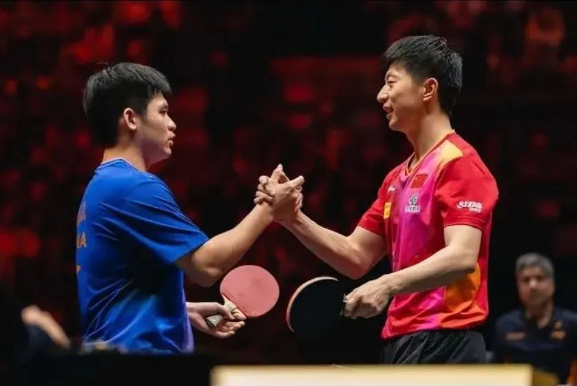 馬龍以一個高球下網結束了WTT中國大滿貫的征程,他滿臉笑容的跟林詩棟擊掌,恭喜這位新科WTT大滿貫賽事冠軍。這已經是不知道第幾次馬龍跟後輩在決賽相見,這次的對手,年齡可能還沒有他的職業生涯長——馬龍2002年進國家隊,2005年林詩棟才出生。