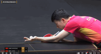 之前林詩棟已經開始有意識的在互相控制中直接給馬龍正手位,而在第七局8-8,他連續擰了馬龍兩個正手位。