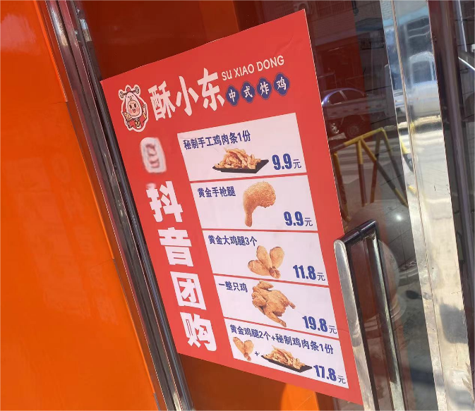 如劉偉所言,考慮到抖音團購正逐漸滲透到縣域市場,甚至部分餐飲商家直接在門店中貼出抖音團購套餐,引導消費者使用抖音團購下單。換言之,抖音團購正成為縣城多業態商家獲客的重要載體。