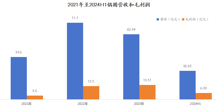 但結合鍋圈財報來看,2022年至2024年上半年鍋圈營收一直在下滑,但毛利潤卻在持續提高。2024年上半年鍋圈的毛利潤同比增長5.3%至6.09億元人民幣,毛利率為22.8%,相比2023年同期的20.9%有所提升。鍋圈給到的解釋為,規模優勢帶來成本下降、供應鏈的自產比例增加、新品和老品的毛利率都在擴大。