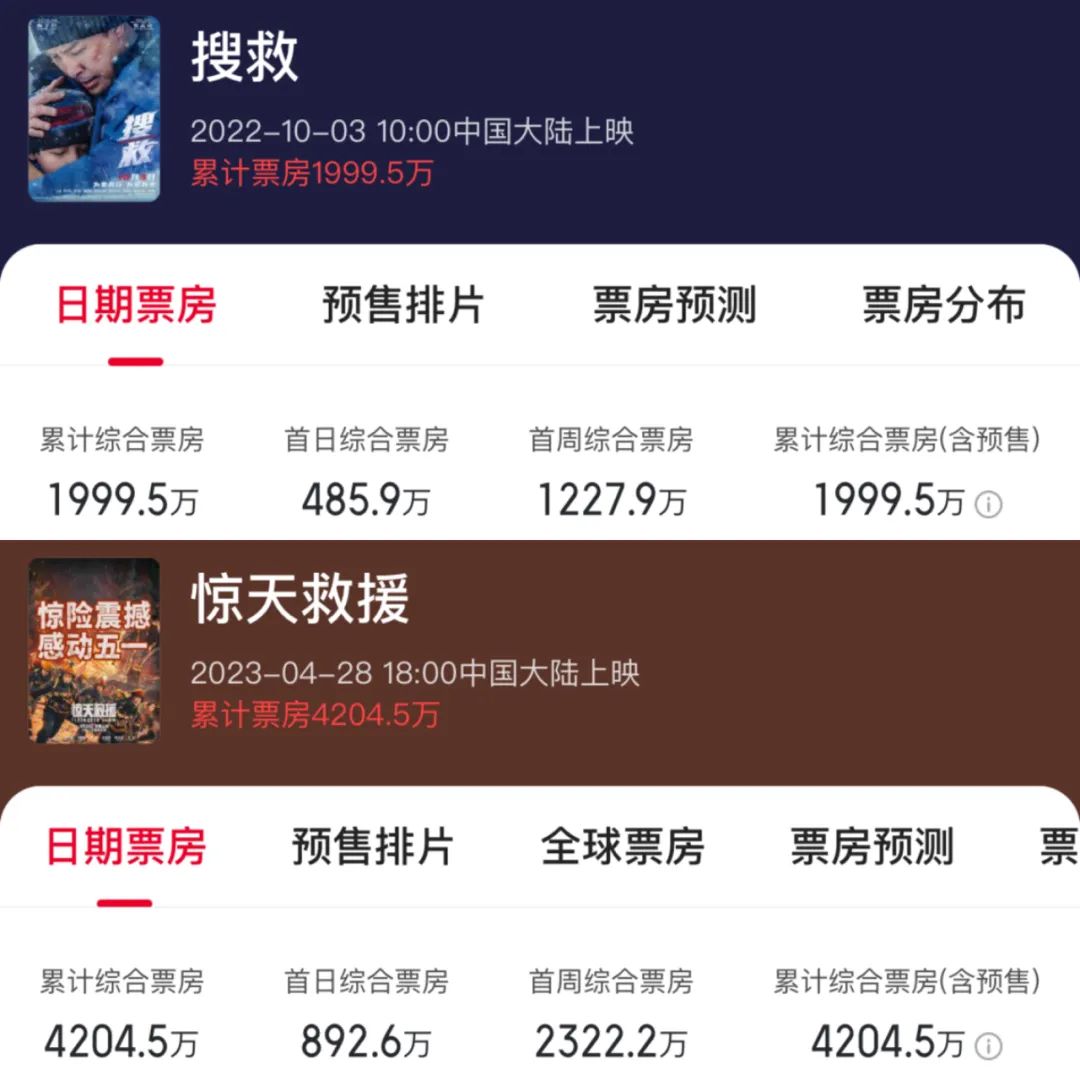 但另一方面,此類故事也面臨着千篇一律、難以出新的困境。這導致此類影片很難有票房上的突破,在2020年往後,幾部災難片都很難再突破十五億票房,《中國醫生》十三億的成績稍勝一籌,而《緊急救援》與《峯爆》均是徘徊在四至五億。