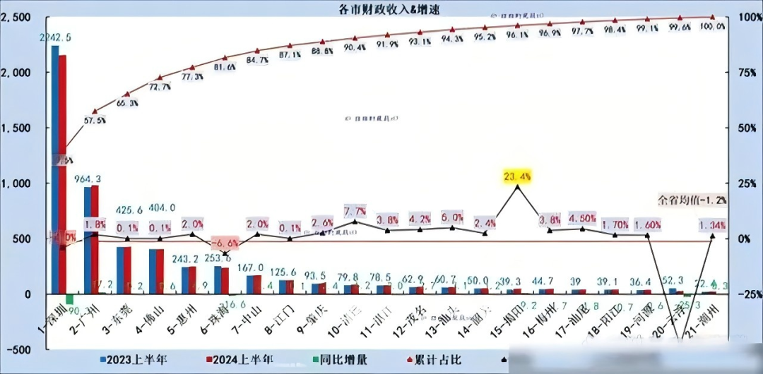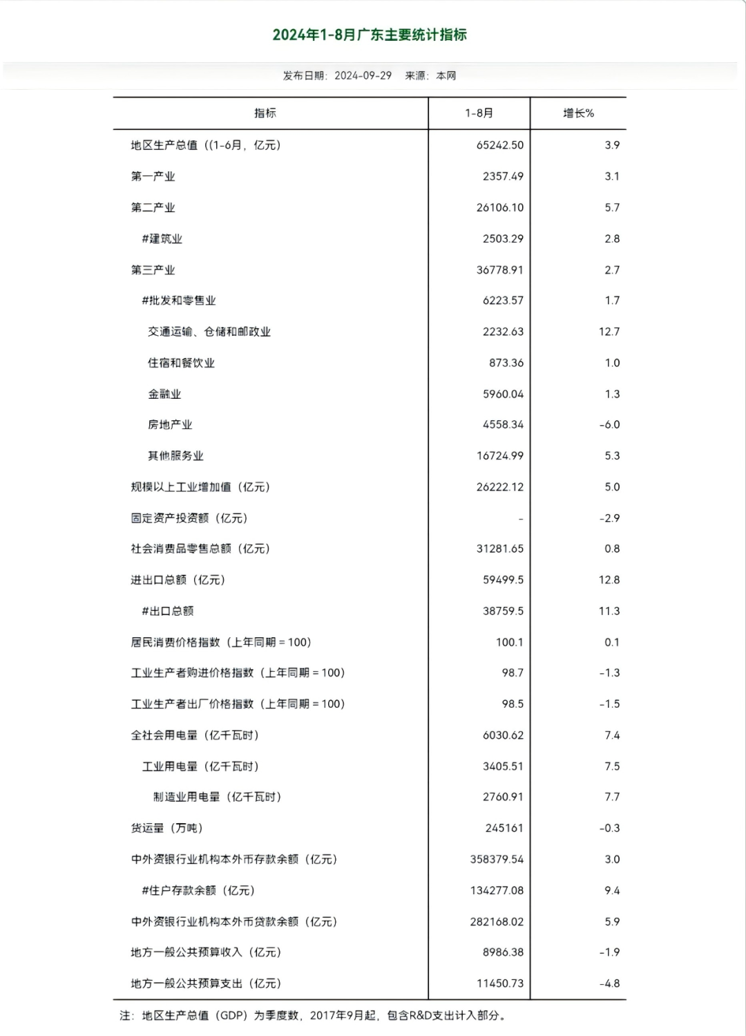 財政收入長期遙遙領先於全國31個省份,並且一直保持穩健增長的廣東,在今年突然“歉收”了。到最新公佈的8月份為止,廣東已經連續8個月財政收入出現下降。年初預計2024年財政收入增長3%的目標面臨壓力山大。