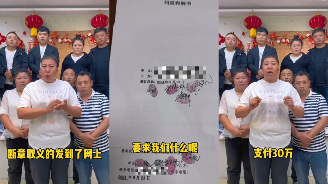 接受民警調解後,“東北雨姐”稱對方主動提出想要和解,於是雙方互相道歉並互不追究其責任,自己還安排了對方吃飯及住宿,沒想到第二天,對方將偷錄的視頻恢復,“斷章取義”發佈,併發來糾紛和解調解書要求支付30萬元。