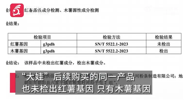 涉事紅薯粉條品牌負責人也第一時間作出回應,稱他們並不認可王海的檢測報告,品牌在9月也請了另一家機構檢測,報告顯示產品中只檢測到紅薯成分。
