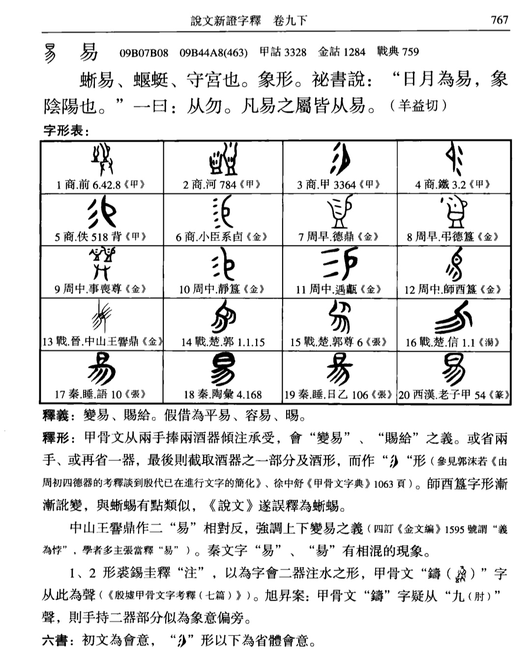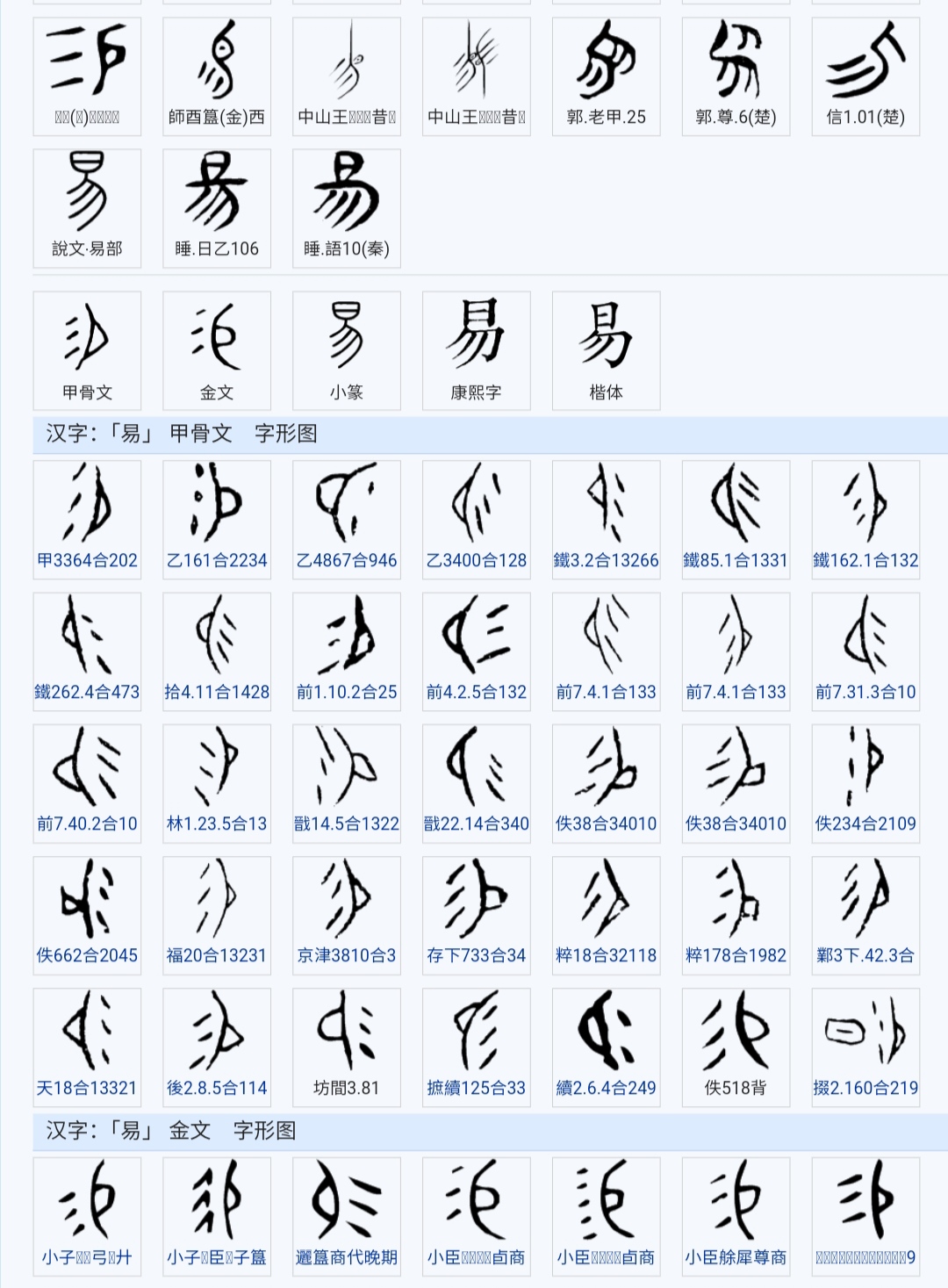 甲骨文【易】孫詒讓、王襄釋讀為易。羅振玉釋讀為錫。