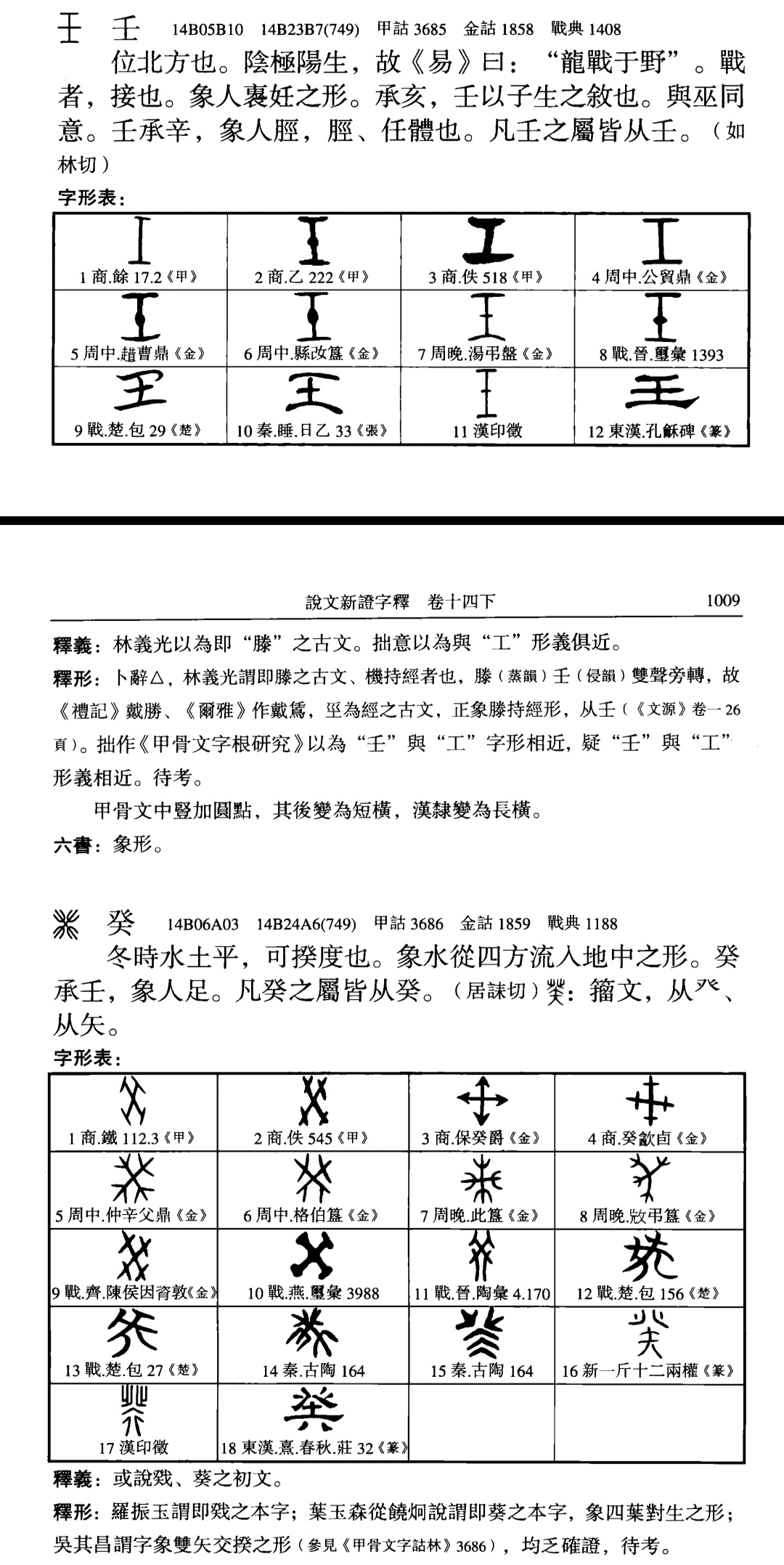 甲骨文【易(半蔽日形)、壬(日行黃道、月行白道)、癸(日月黃白道交叉形)、巫(日月食十字界限)、彔簡化字形(日上十字界限指事)彔(日左右各一點星光)彔繁體字形(日中有月:月入食限,發生日食,昏暗如暮)、亙(月字形上下各一橫指事)繁體(亙字套娃:月入食限)】詞例:易日(日食、日蝕)。王亙。示壬、示癸。四巫、東巫、北巫。大彔(日全食),中彔(日環食),北巫北彔(日偏食),東巫東彔(帶食日出)、鷄彔。(或解釋為尚書、中書之類。或作為山麓、東麓、北麓。或兼而有之,人職、地形、天象三合一的名詞)
