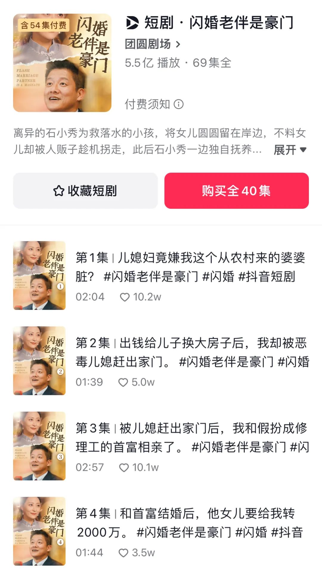 而最近在中老年賽道中爆火的《閃婚老伴是豪門》,採用的就是端原生的商業模式。