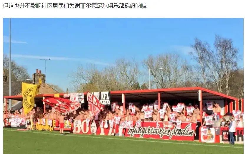 他是英非甲的球隊。英非甲是英格蘭足球聯賽體系裏的第八級聯賽,換算到我們這邊,等於比中乙還要業餘數個檔次。要知道謝菲爾德可有謝菲爾德聯隊這樣的熱門俱樂部的,但當地居民,就是願意支持這樣一隻混跡業餘比賽的球隊,因為這是真正屬於他們的球隊。從球迷到球員再到球隊工作人員,都是當地社區的居民。