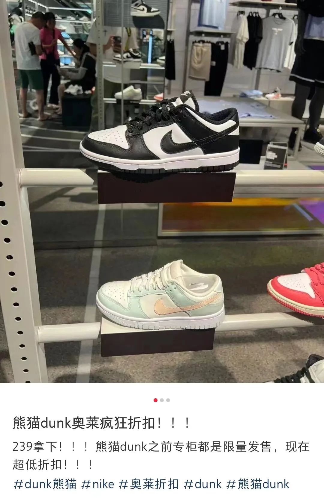 2021年,耐克上新了Dunk Low Retro熊貓配色球鞋,發行價為699元,後來在二級市場一路飆升到2000元左右,但這也是最後的輝煌了。從去年開始,這款球鞋的價格慢慢回落,如今幾乎原價就能買到。其他不少耐克經典鞋型,在得物上也跌破了發售價。