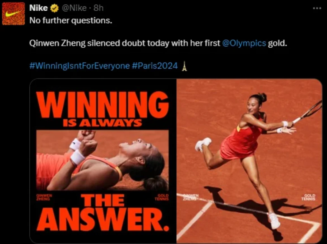 或許只有耐克和鄭欽文的深度綁定,可以算是其為數不多的亮點了。