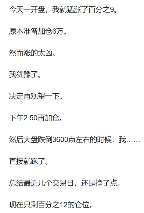 例如下面這位仁兄就是非常典型的新韭菜,從強烈看多準備追高到幾乎清倉,如此極端的情緒轉換隻用了一天時間。
