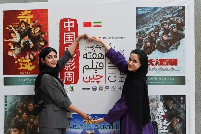 一些伊朗妹子還在”中國電影周“標誌牌前留影,邀請更多的伊朗年輕人去觀看中國影片。