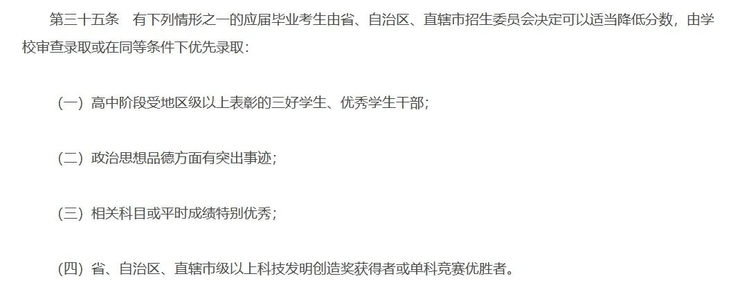2005年左右,有相關文件明確表示,藝術特長生,在報考學校時可以享受分數線的優惠政策,即在高考錄取中,其文化課考試成績可以比該校的調檔線(最低分數線)低20分以內;2008年以後,國內逐漸加強對教育公平的關注,教育部開始收緊藝術特長生加分政策。到了2014年,全國性政策明確要求各省市取消大部分藝術特長生的加分項目。