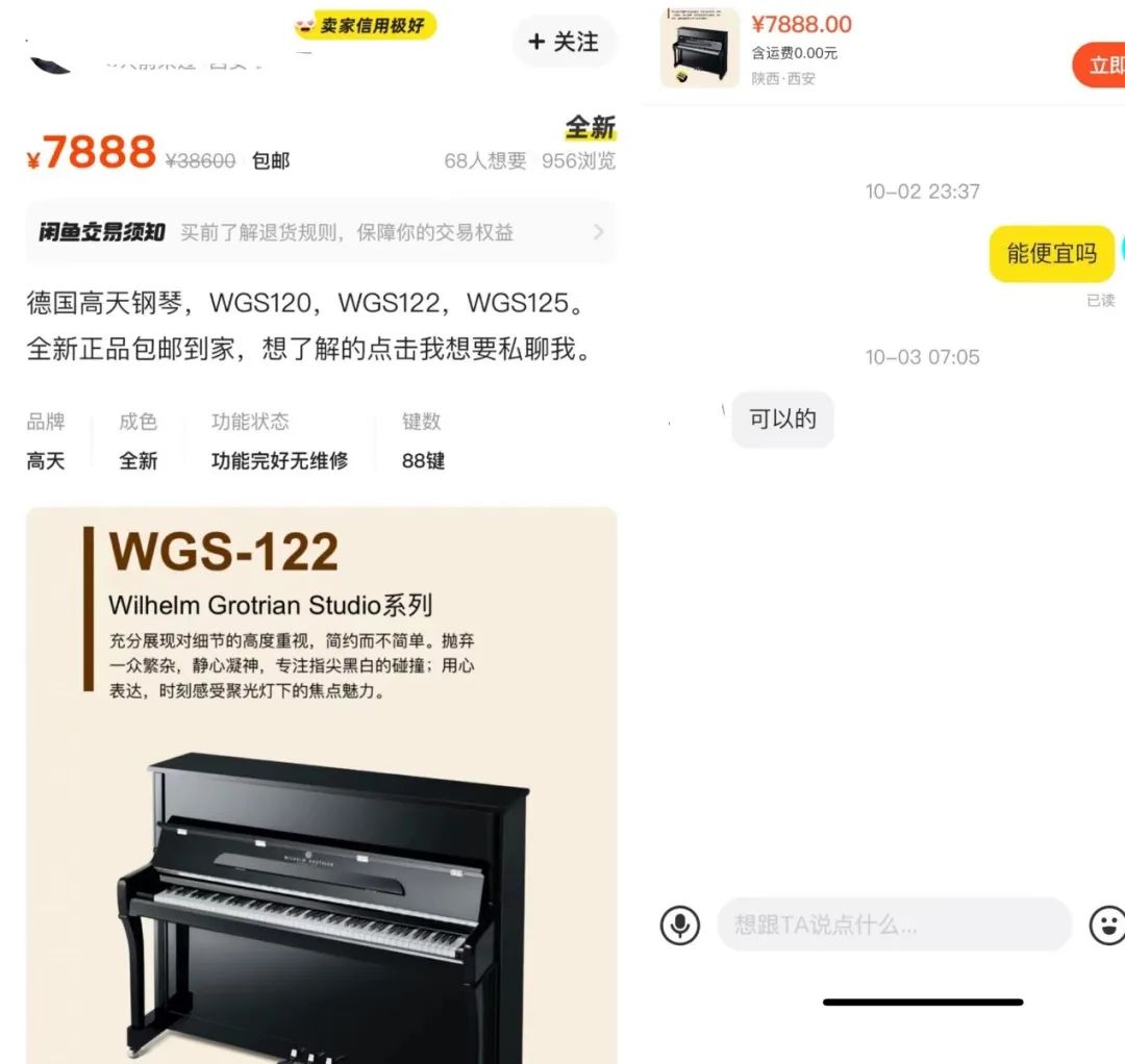 在柏斯音樂官網可以看到,目前國內Grotrian系列鋼琴的價格在3萬(立式鋼琴)到148萬(三角鋼琴)之間,而二手平台上已經出現低至7888元的價格。