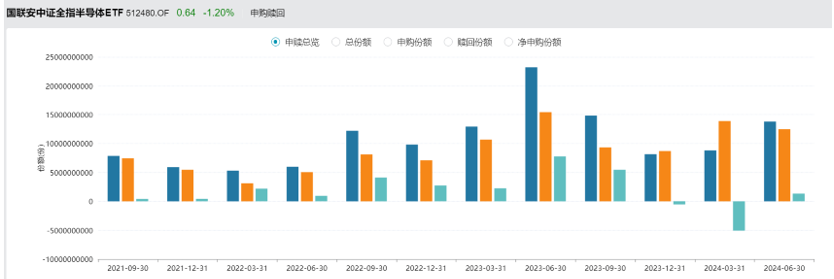 市場上眾多的半導體主題ETF基金,清晰的記錄了這個過程。除了在2024年第一季由於市場快速殺跌有一波明顯的贖回外,2019年至今,半導體指數基金,基本上是一直被淨申購的。