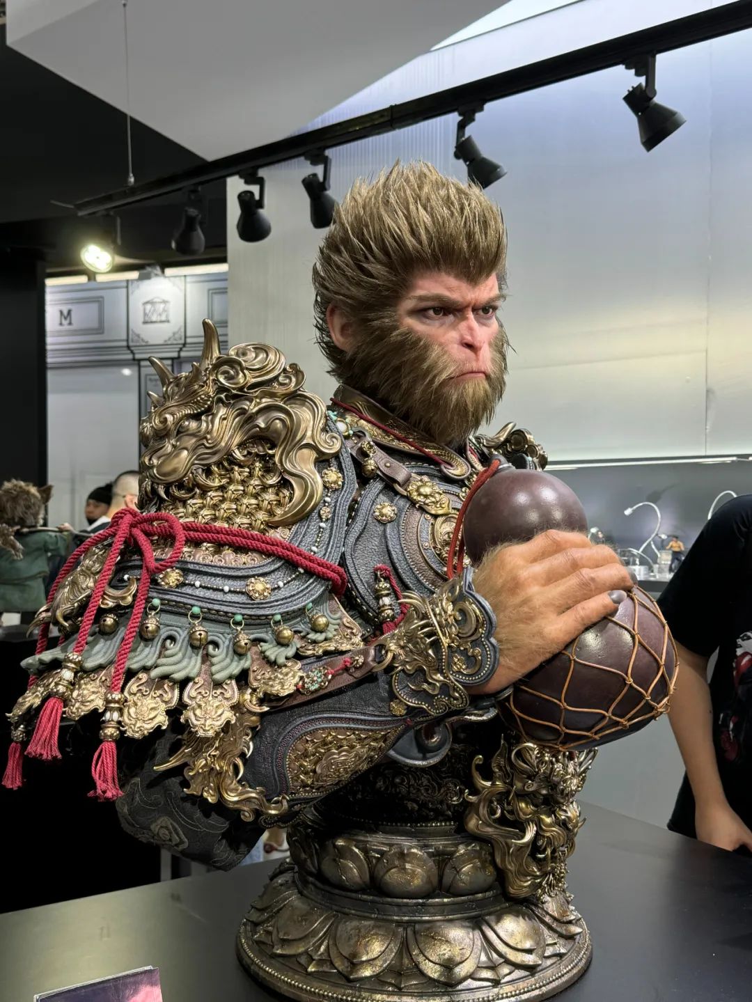在這場模玩愛好者的線下盛會上,各家參展商都掏出了壓箱寶貝,比如INART展台的《黑神話:悟空》天命人1:1胸像。