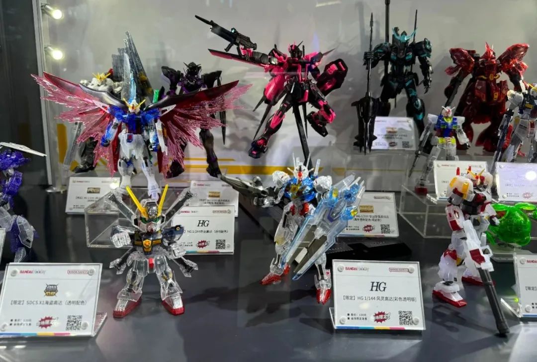 在本屆WF上,萬代、良笑社、海洋堂這樣的頭部模玩品牌展區是每個人必去的打卡點。還未完全抵達萬代展區,部分中國內地首次亮相的高達模型和三米高的元祖高達模型就已經惹人注目;“高達45週年”特展更是情懷滿滿。售賣區因為場限飛昇自由高達和命運高達的彩透模型人滿為患。
