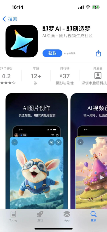 另一方面,兩者對視頻生成模型的佈局有所不同。字節將“即夢”作為一個單獨的移動應用,獨立於視頻編輯工具剪影之外;而快手則選擇直接將“可靈”搭載於其視頻剪輯平台快影上,兩者使用的便捷程度有所不同,在用户積累、生成視頻數量上自然也有差異。