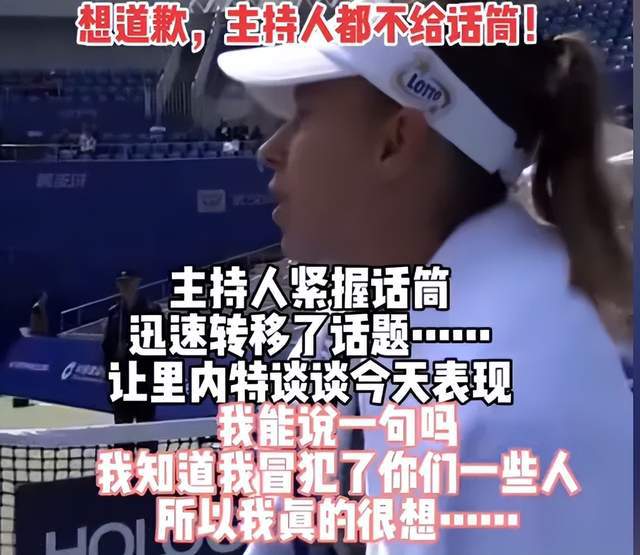 到了賽後採訪階段,裏內特面對主持人提問,突然開口想要道歉,來了一句:“我知道我冒犯了你們,我真的很想……”