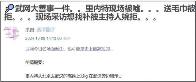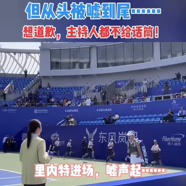 不知道是不是受風波影響,沒有一家內地平台轉播裏內特武網比賽,球場上座率更是慘淡,鏡頭一轉過去出現大片空位,可是就算只有零星幾個觀眾到場,他們依舊努力給予裏內特最大噓聲,大到出場音樂都壓不住的程度。