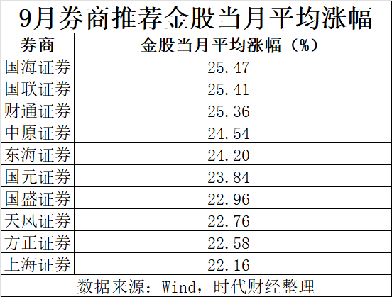國海證券9月薦股當月平均漲幅最高
