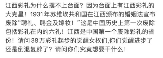 所以,早在93年前,就出台法令取締彩禮。