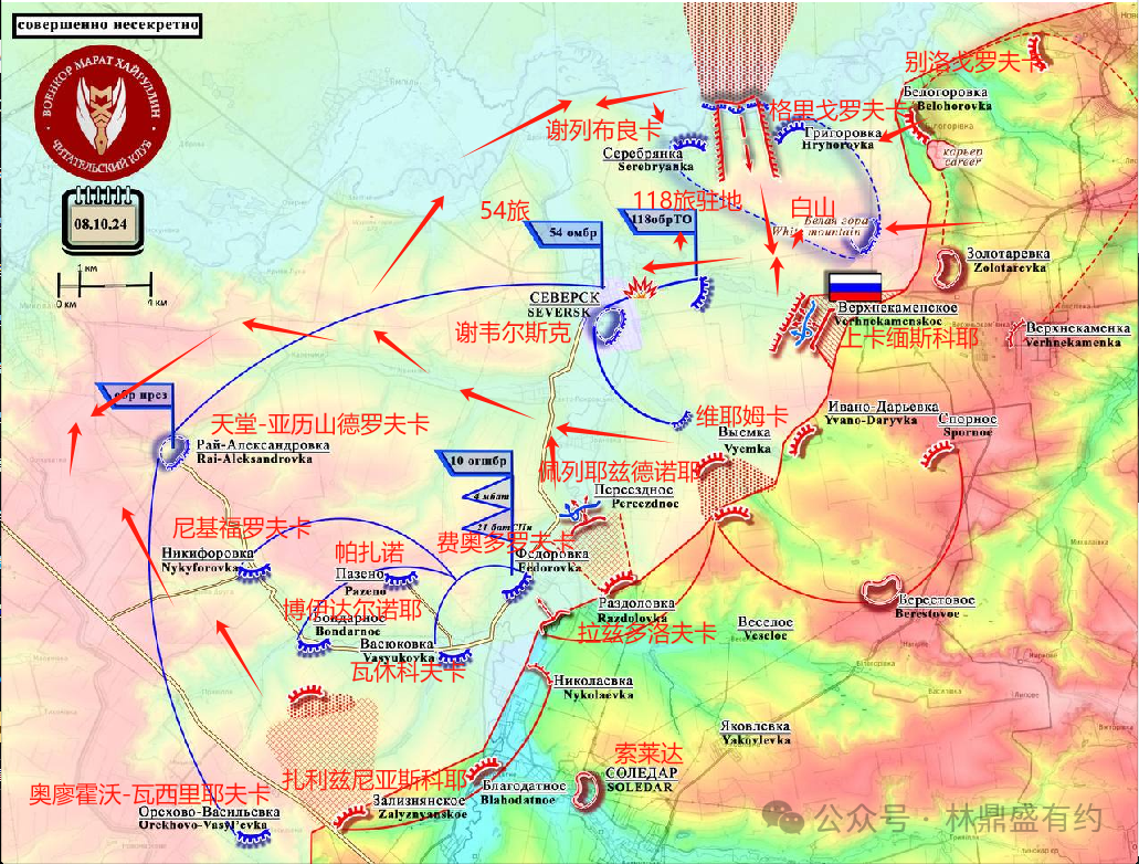 🔴俄軍在恰索夫亞爾以北的格里戈羅夫卡和別洛戈羅夫卡加強攻勢,劍指白山!很可能會與上卡緬斯科耶的俄軍在南北對進的策應,白山將可能會逐步處於俄軍的戰術包圍之中。最要命的是, 俄軍並未硬碰硬的去攻打格里戈羅夫卡,而是在謝列布良卡和格里戈羅夫卡之間實施大膽穿插迂迴,似乎是想要將格里戈羅夫卡和白山一起包圍。如此一來,就能夠避開正面攻堅,烏軍將會陷入被動。除非,烏軍大舉增兵,對穿插而來的俄軍實施反包圍,才有機會解白山之圍。